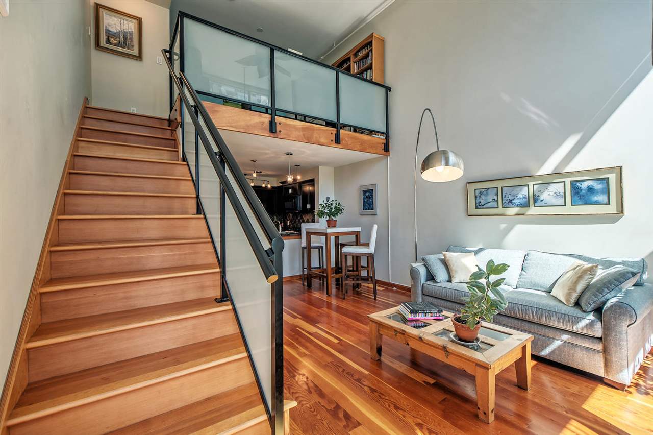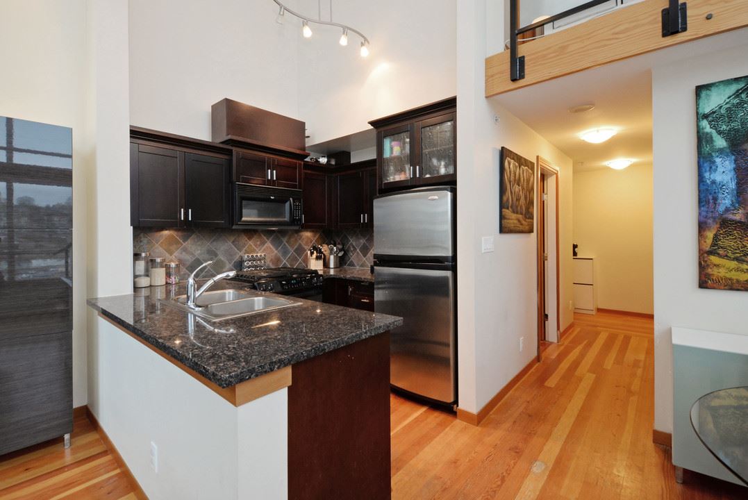 Elegant Murano Lofts. Large private unit with city view. NE exposure allows plenty of sunlight but keeps the unit cool during the hot summer months! Two-level, 2 bath, 17′ floor to ceiling windows. Hardwood floors, upgraded ceiling fans, and dining room light fixtures. The kitchen boasts double-nosed granite countertops, gourmet Kohler fixtures, and Whirlpool gold gas range. This unit also.