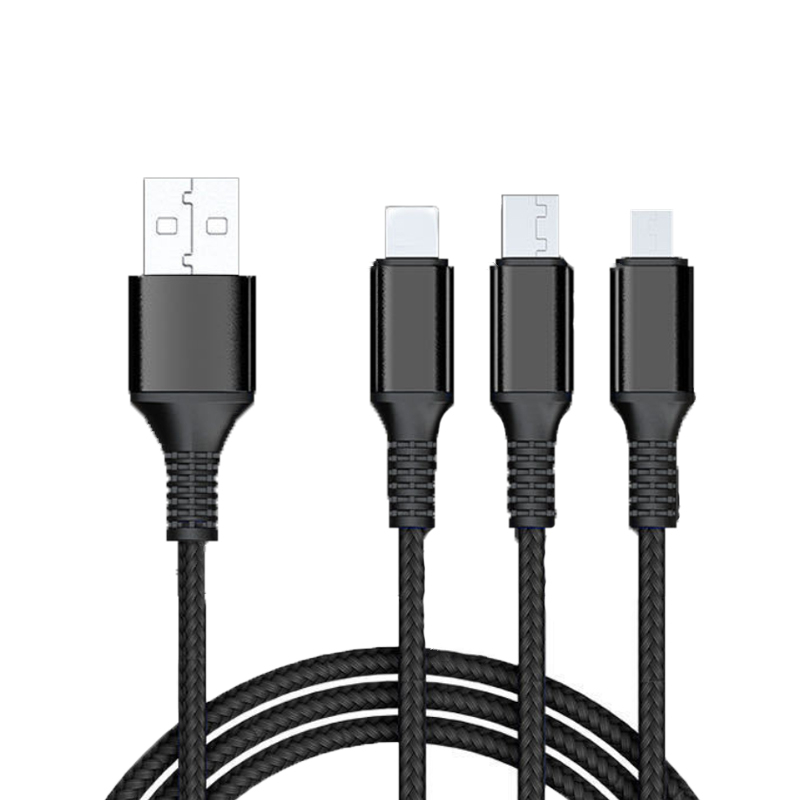 Description. Experience the ultimate convenience with the 2m 3-in-1 Universal Charging Cable. It's the perfect solution for all your charging needs, combining versatility with a generous 2m length for hassle-free use.