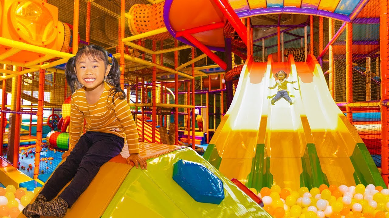 FAMILY FUN KIDS INDOOR PLAYGROUND GIANT SLIDES AT HAPPY KINGDOM YouTube
