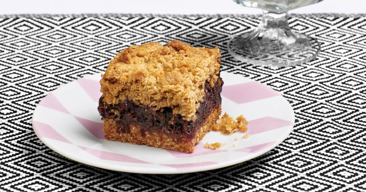 Ingrédients : Garniture : 2 tasses de dattes séchées dénoyautées bien tassées (1 paquet de 400 g) 375 ml (1 tasse 1/2) de compote de pommes non sucrée. 5 ml (1 c. à thé) de jus de citron. 2.5 ml (1/2 c. à thé) de bicarbonate de soude. Croustillant : 500 ml (2 tasses) de flocons d'avoine à cuisson rapide.