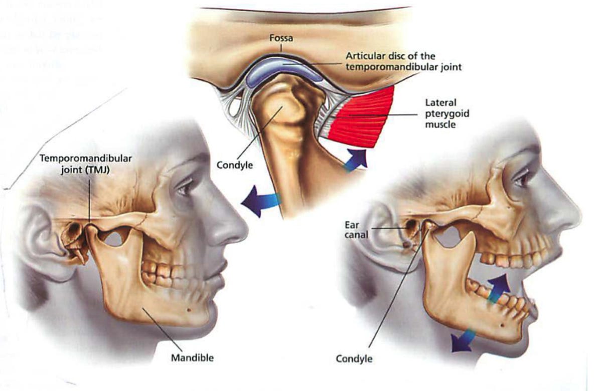 The temporomandibular joint (TMJ) is the joint connection between your jaw and your skull. This is an especially important joint that opens and closes your mouth, acting as a sliding hinge that allows for up and down and side to side movement. It is also involved in chewing, yawning, singing,